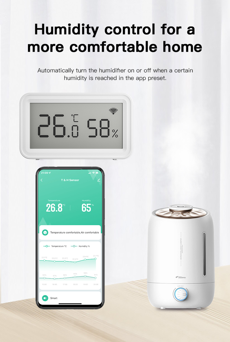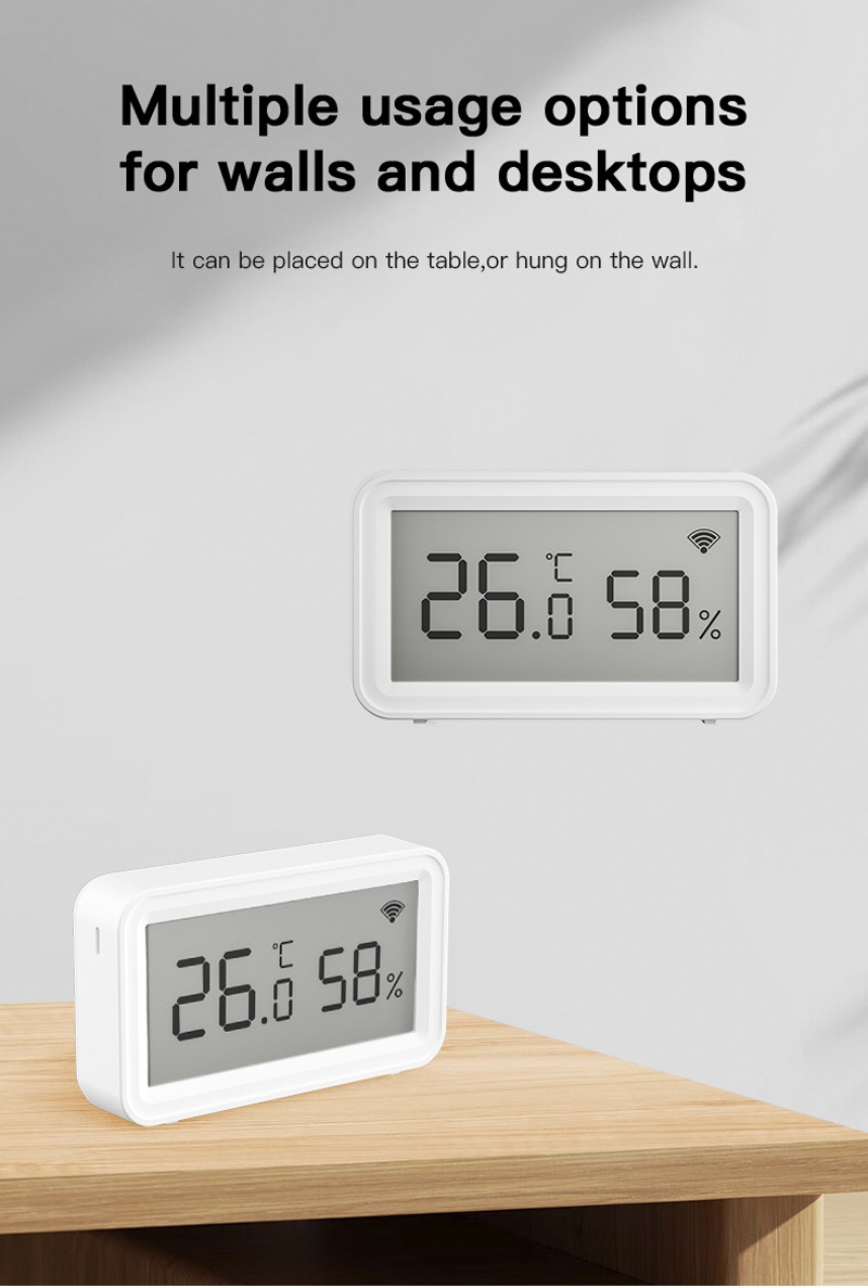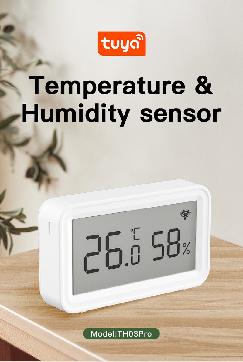 Tuya Smart digital thermometer and hygrometer for home use, baby rooms, wine cellars, and storage rooms. Accurate environmental monitoring.