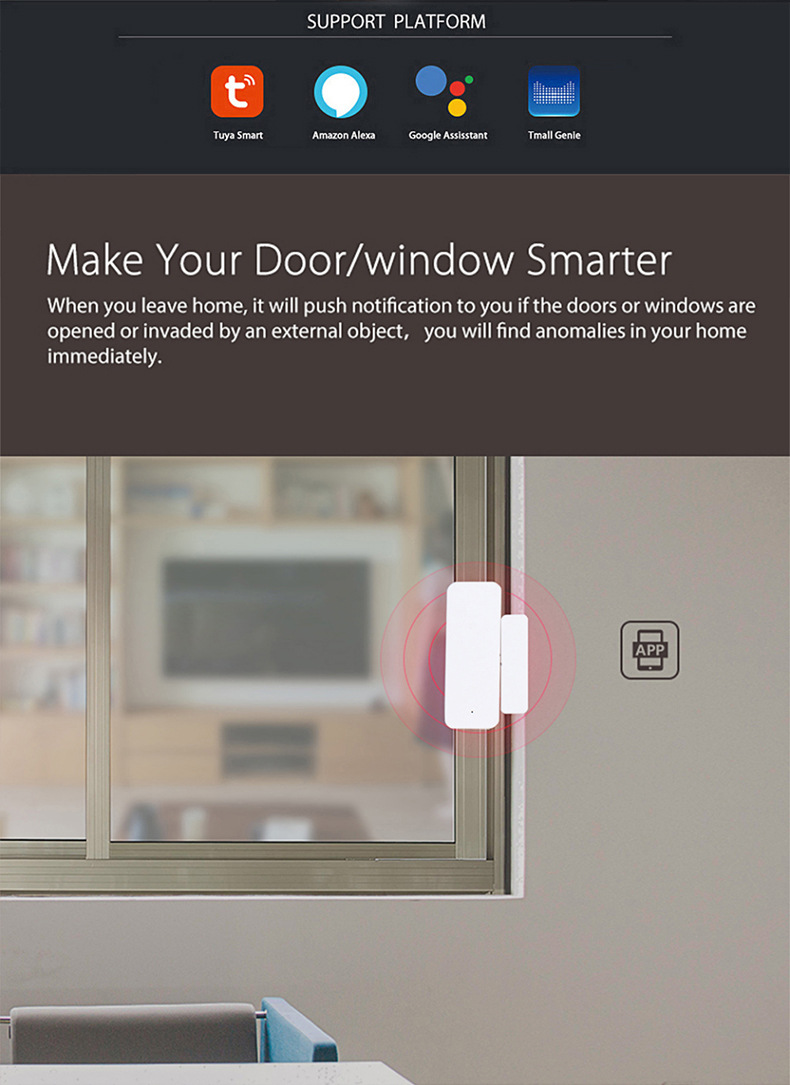 涂鸦wifi门窗传感器门磁智能家居远程家庭防盗门窗防疫隔离报警器
