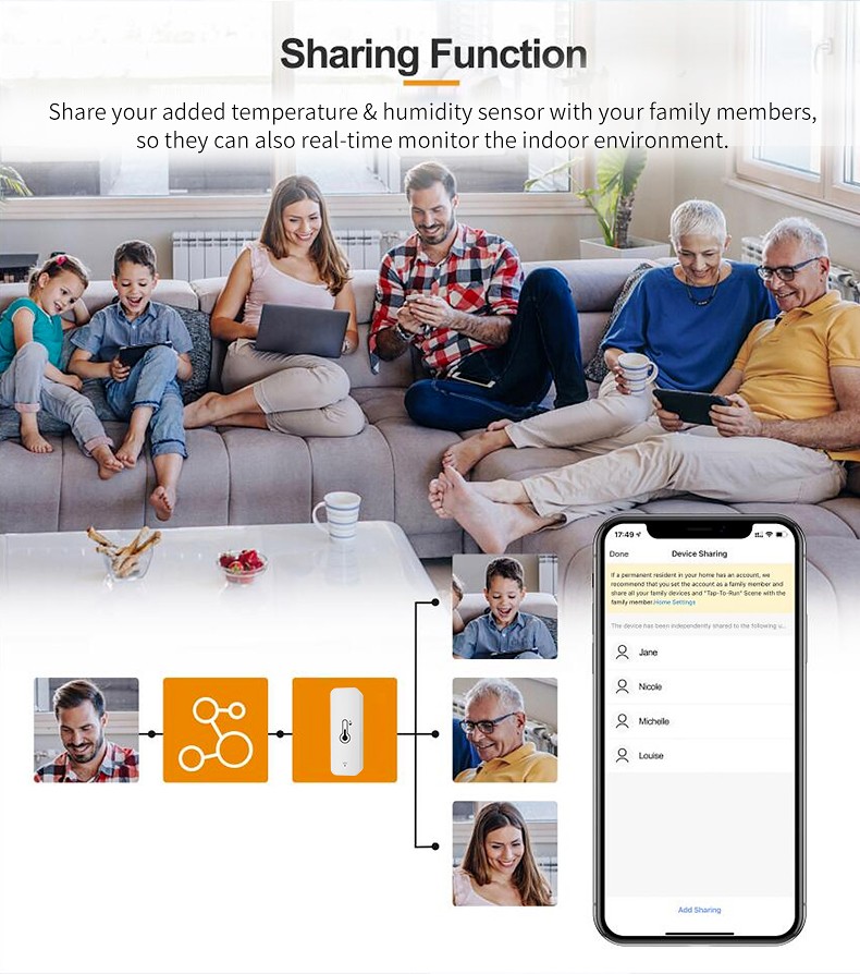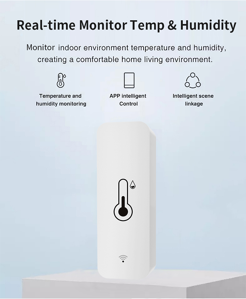 该传感器可作为涂鸦智能、智能生活、亚马逊Alexa、Google Home的温湿度数据源。您可以根据数据源执行许多自动化流程。