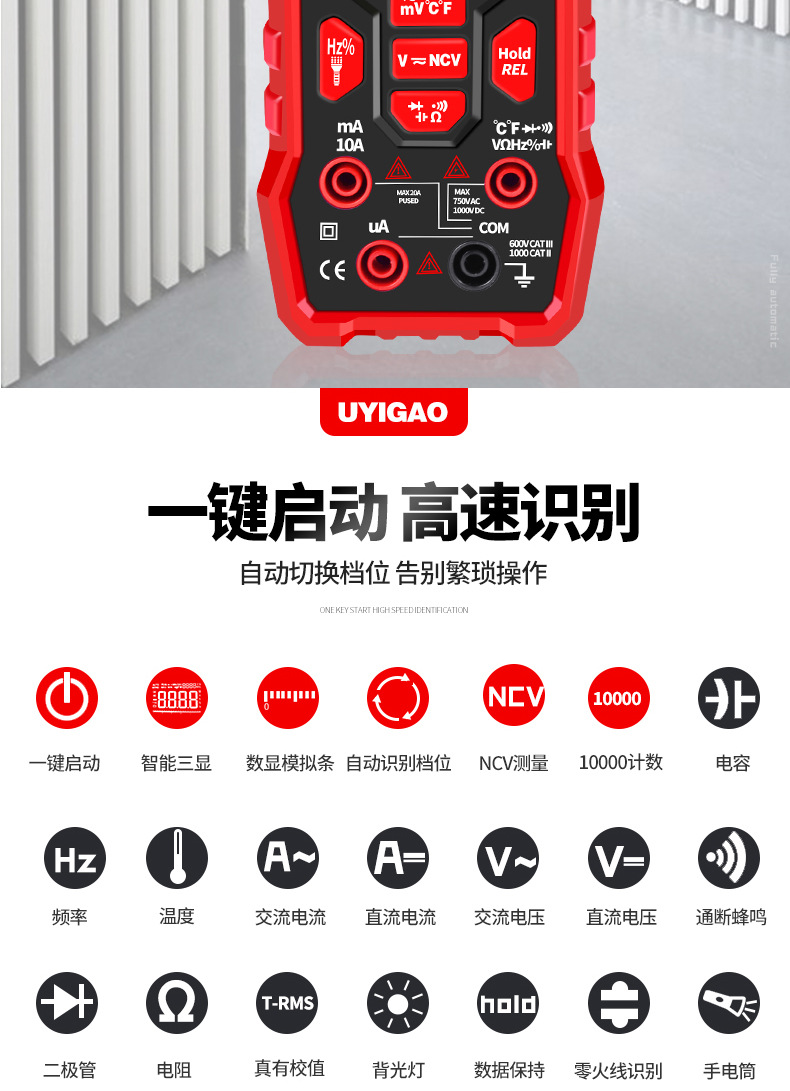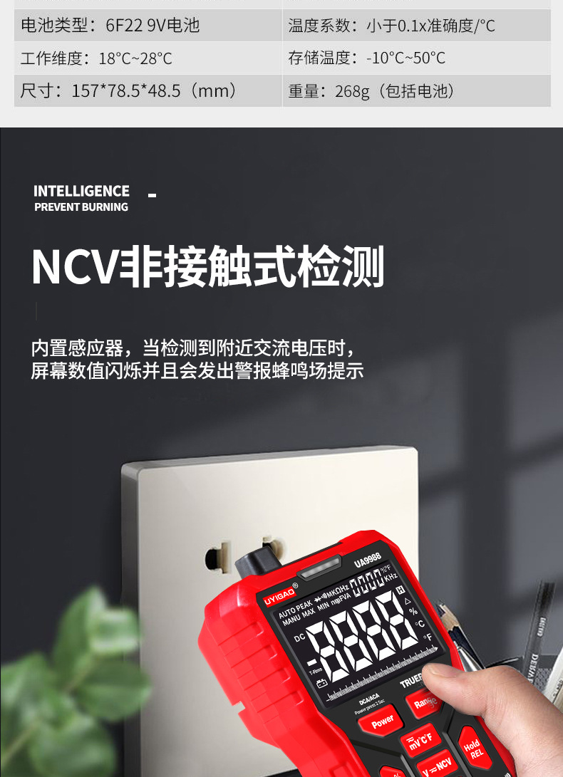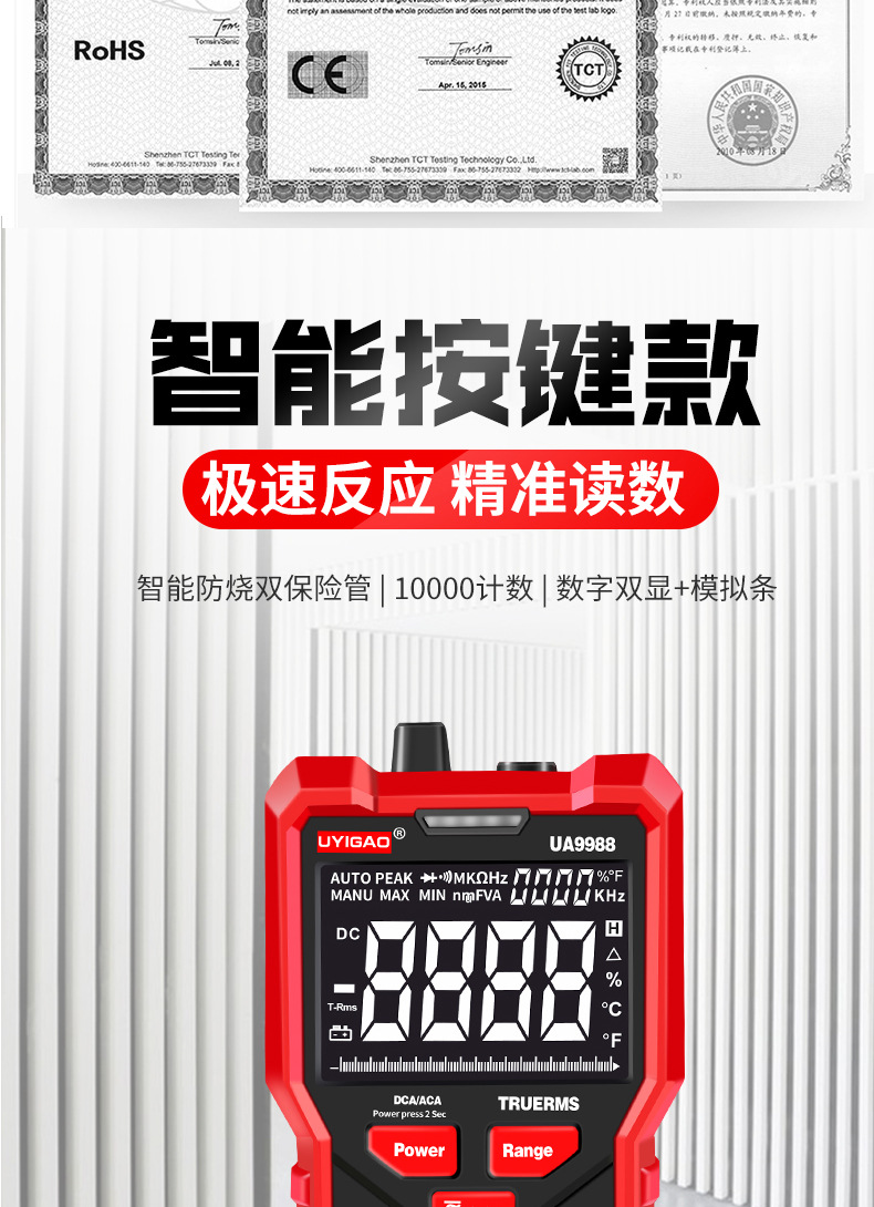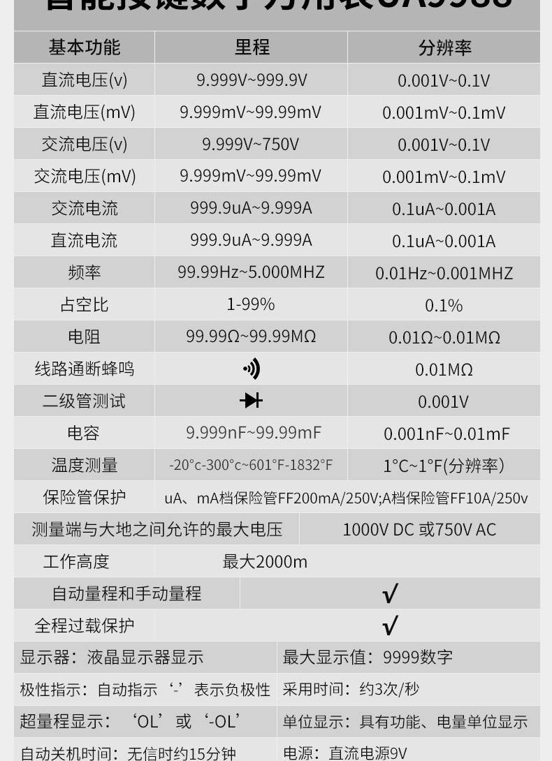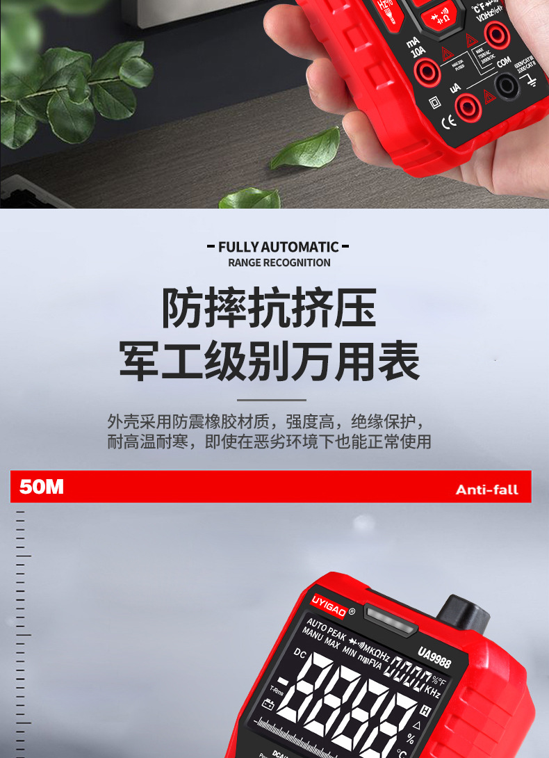 UA9988智能全按键数显万用表自动量程万能表电工家电维修