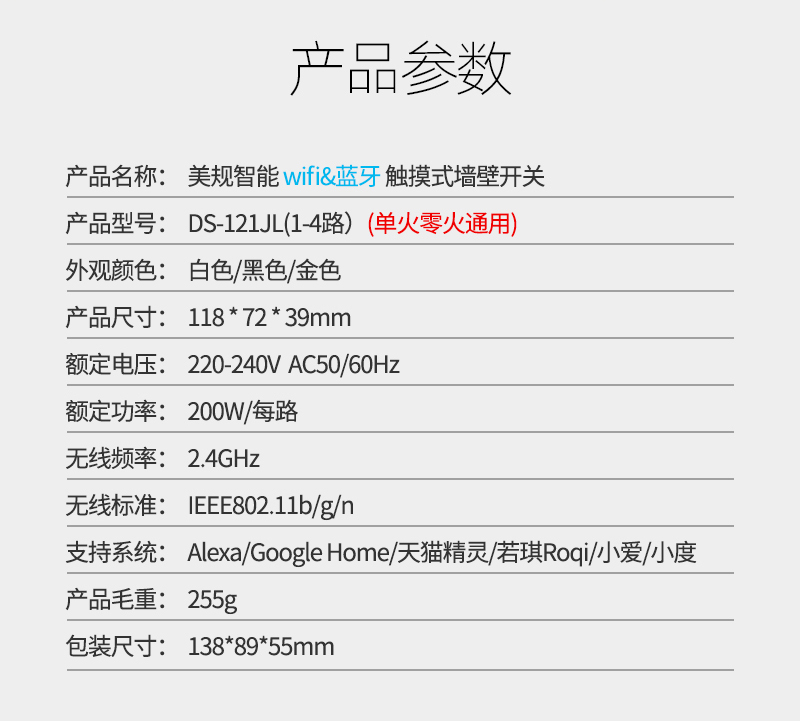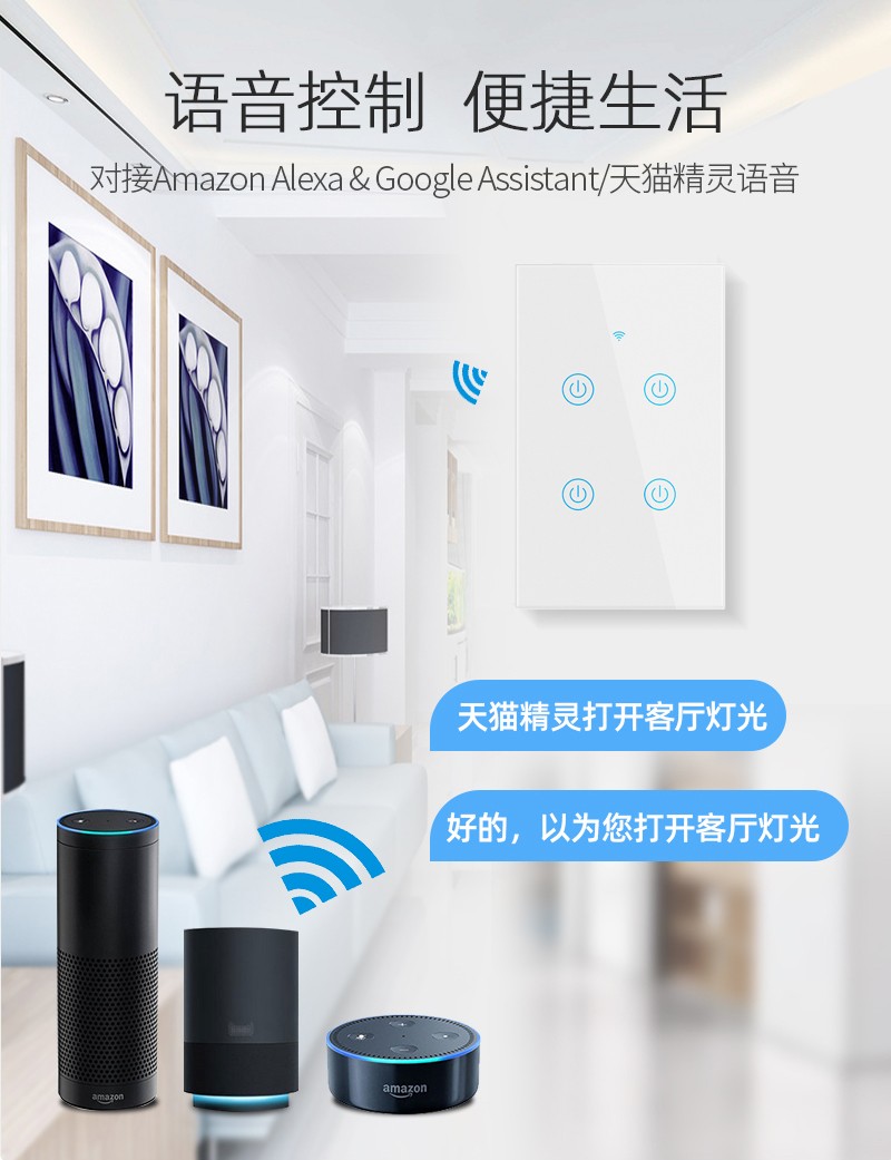 智能开关家居86型1-4路触摸开关wifi手机远程控制alexa语音涂鸦
