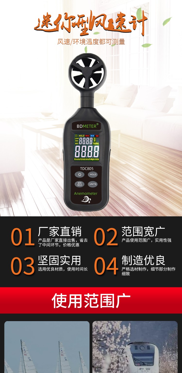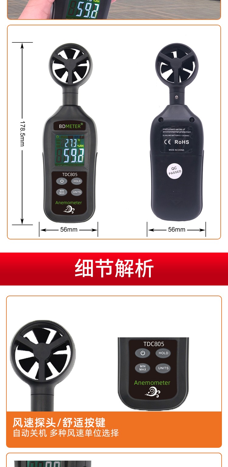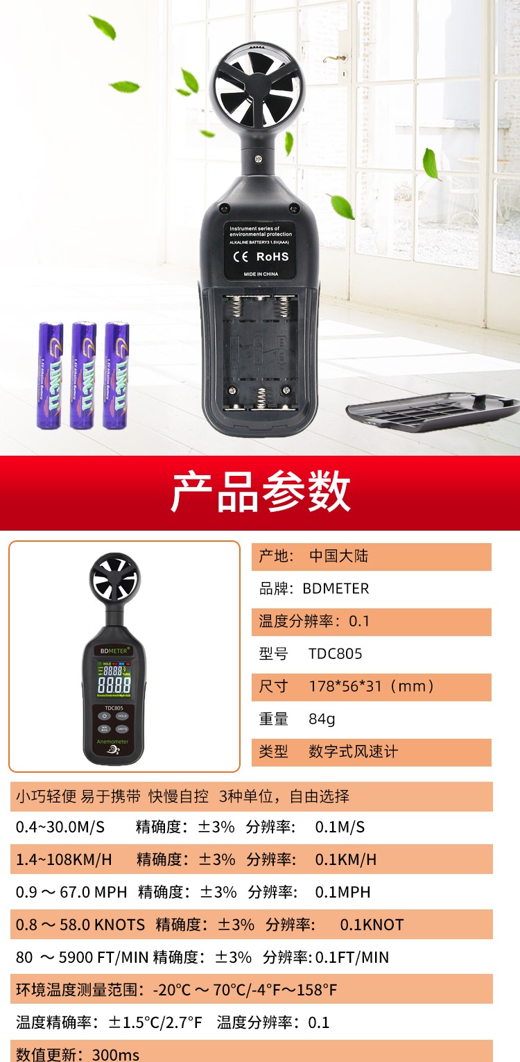 TDC805高精度数字迷你风速计 小叶轮风速计风力风温风速计