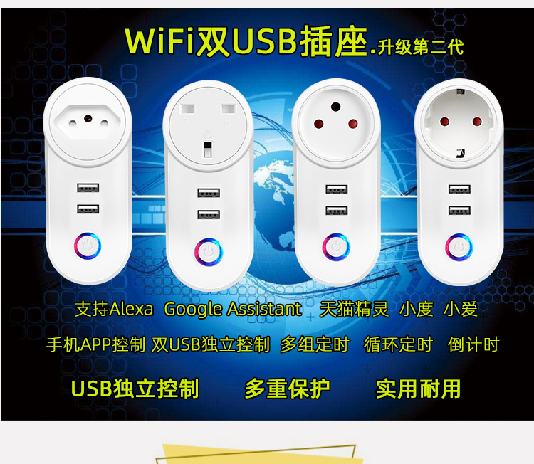 wifi插座USB独立控制源头厂货美规英规欧规巴西规以色列10A&16A