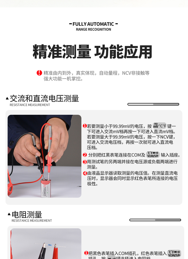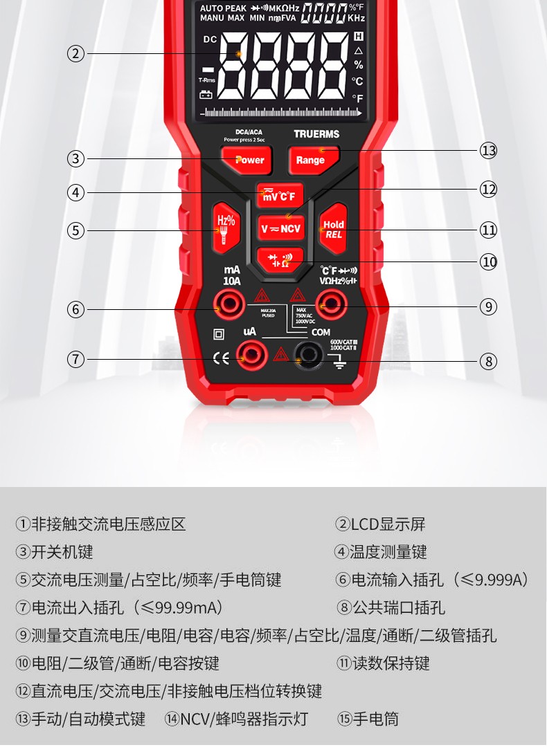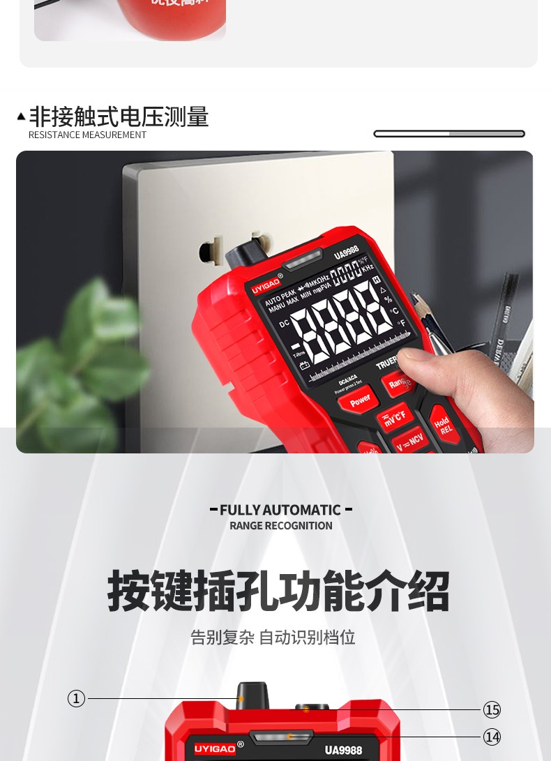 新一代智能型万用表,多用表,一键测试电压,电阻,电流等
