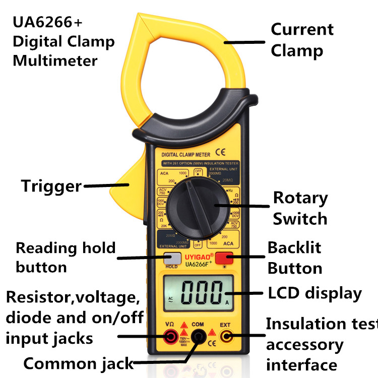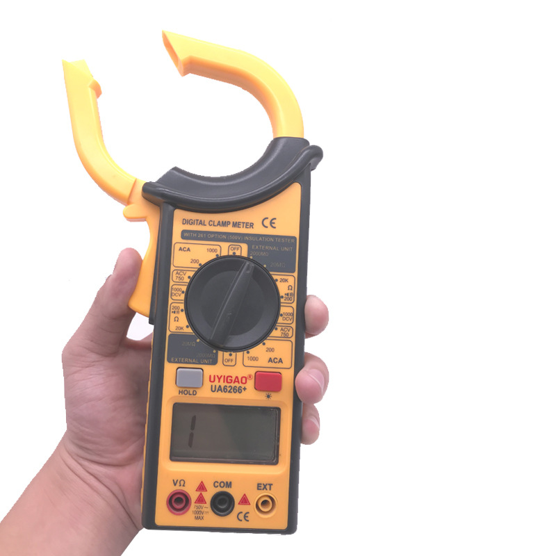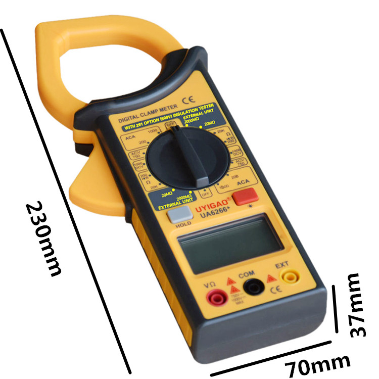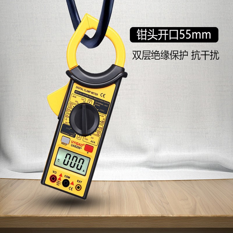 Digital clamp meter has AC current range 0-1000A, maximum jaw opening size 55mm, 4 digit display and maximum value 1999.