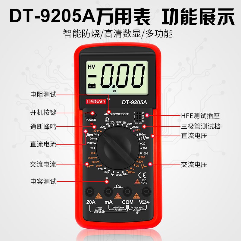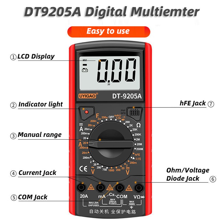 UA9205N digital multimeter is an easy to operate, accurate readings,