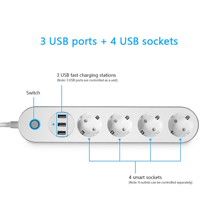 [3 USB ports + 4 sockets] The sockets are controlled independently, and the USB ports are used as