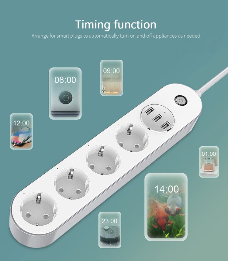 [Timing] The Power Strip is automatically turned on and off at a given time through the timer function.