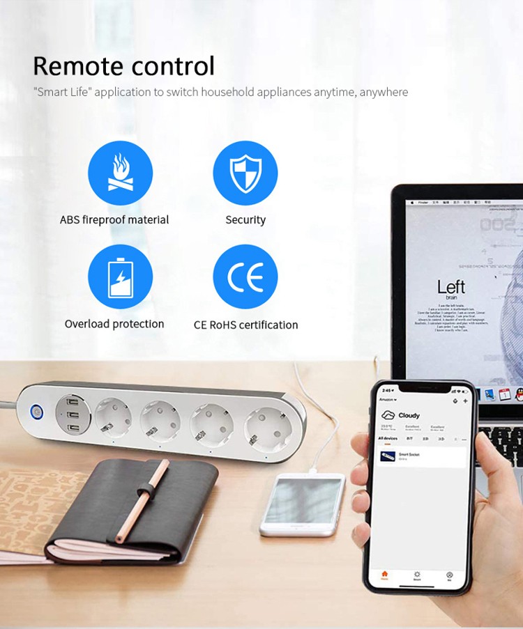 [APP Remote Control] Tuya or smart life APP can be used to remotely control the Power Strip on and off. You can see and control the open or closed state of the Power Strip from the APP when you are away.