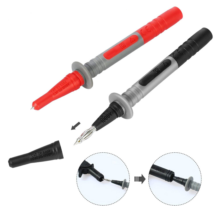 2pcs 1.0mm Diameter Test Probe with 4mm Standard Socket Connection Insulation Piercing Test