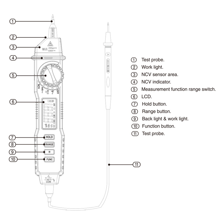 | DC voltage | 200mV/ 2V/ 20V/ 200V/ 600V | ±(0.7%+2) |