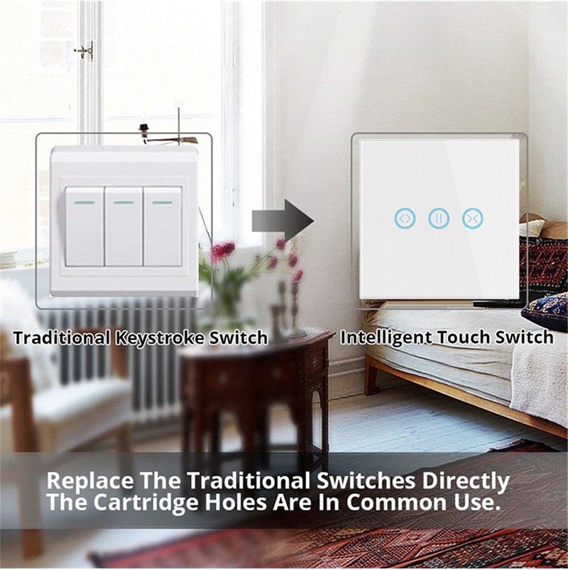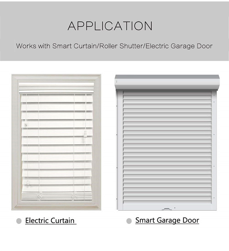 3.Multi-scenario Matching: Match different kinds of curtains such as window blinds/rolling blinds/venetian blinds ect. Install the Smart Curtain Switch in a lot of places, like office/ study/ bedroom/ living room ect. Even control the Awning in your yard open/closed as you want. Make your life and work more smart and convenient.