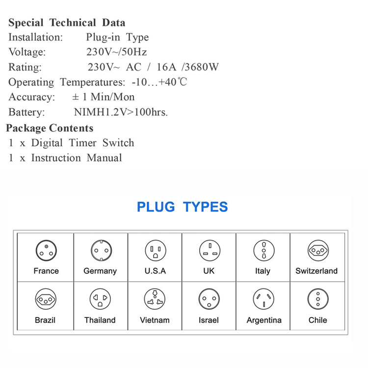 24 hours / 7 days programming: up to 10 different on/off programs per day. Each program you set is repeated once a week. With the integrated battery backup, the device keeps programming even in the event of a power failure and saves you the need to reprogram - convenient to use.