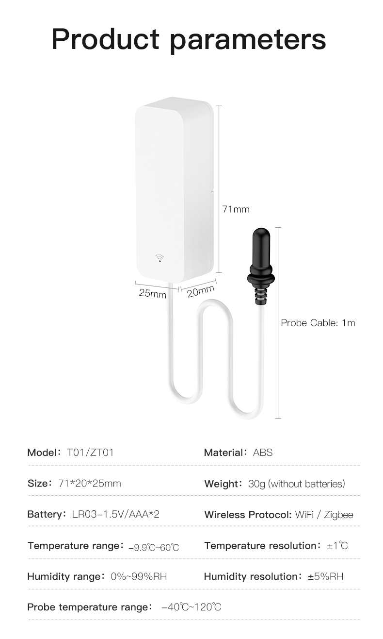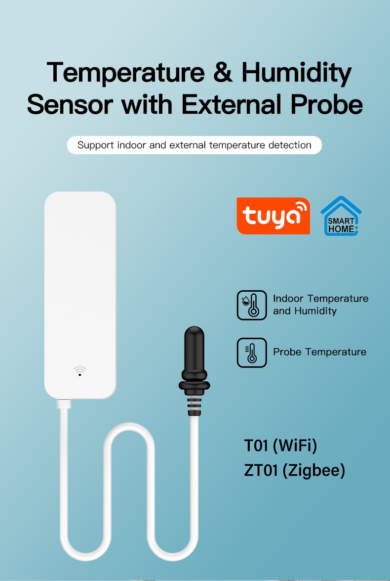 Tuya WiFi Zigbee Temperature & HumiditySensor with External Probe