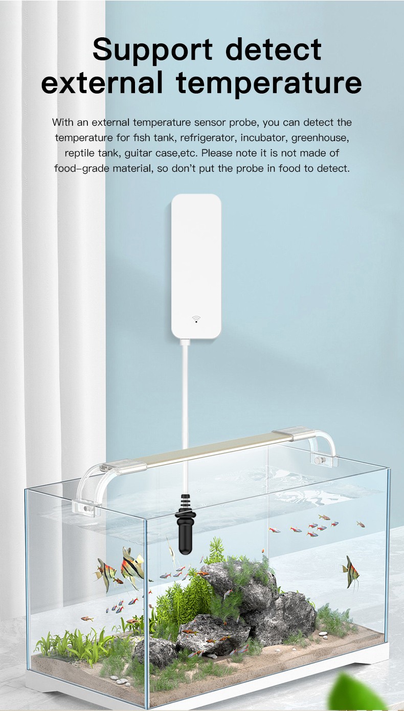 WiFi Temperature Humidity Sensor With External Probe Tuya Smart Life Thermo Hygrometer Remote Monitor For Aquarium Winery Pool