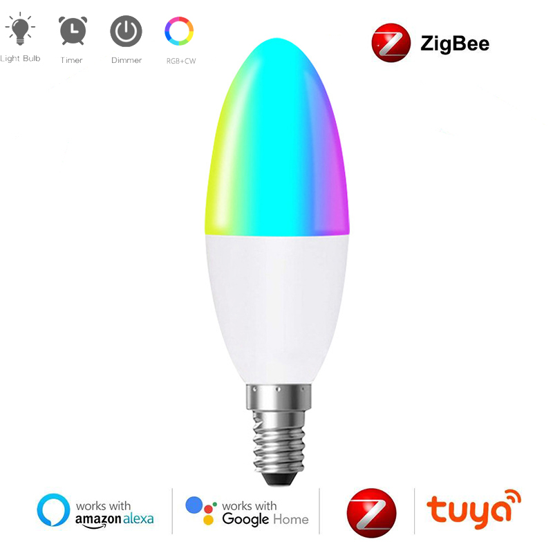 Tuya Zigbee 3.0 E14 Wifi Smart LED Bulb 5W RGB+CW Dimmable Bulb Colorful Changing LED Lamp Work With Hue Smartthings Echo Plus