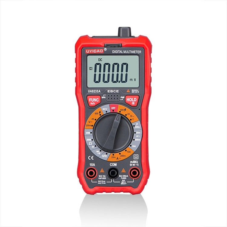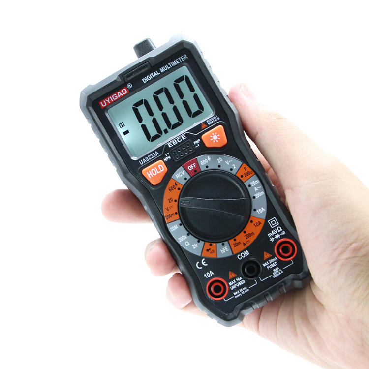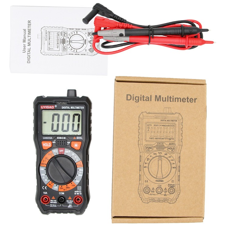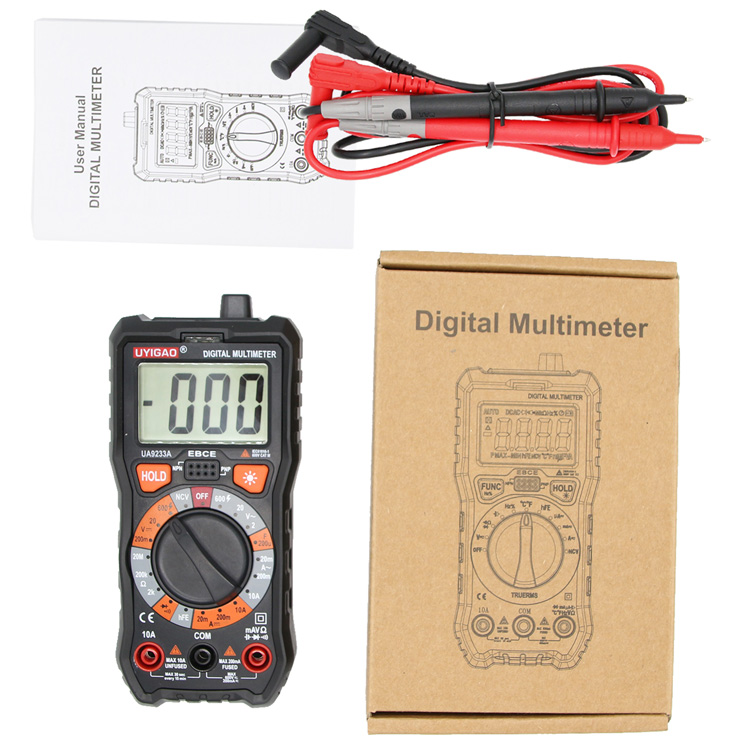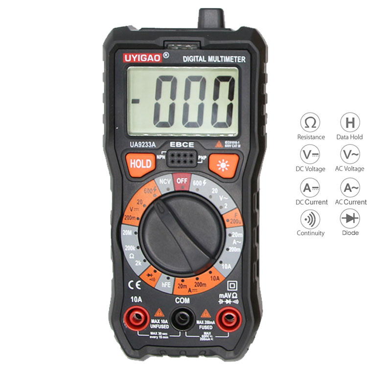 | UA9233A | New Digital Multimeter with NCV ,Manual range, 1999 display. AC/DC 10A;AC/DC 600V;Capacitamce ;Diode Test ;Transistor,Backlight ;continuty test, Data hold |