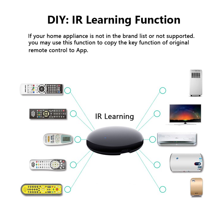 [ APP Control ] -Download the APP to your phone and control the IR appliances at home under 2.4GHz WiFi network. Supports iOS 8.0 and above & Android 4.0 and above smart phones.