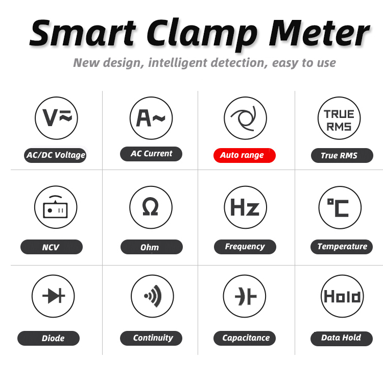 New design smart tong tester pinza amperimetrica amperemeter automatic true rms digital clamp meter